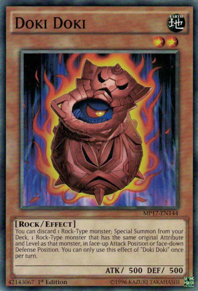 You can discard 1 Rock-Type monster; Special Summon from your Deck, 1 Rock-Type monster that has the same original Attribute and Level as that monster, in face-up Attack Position or face-down Defense Position. You can only use this effect of "Doki Doki" once per turn.